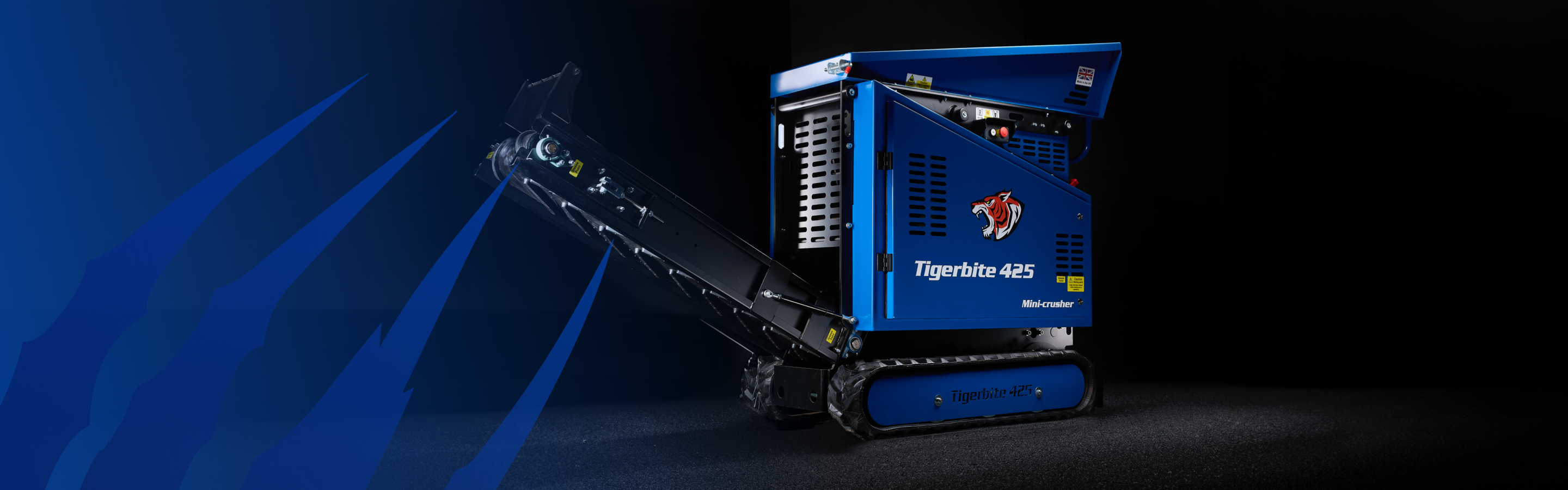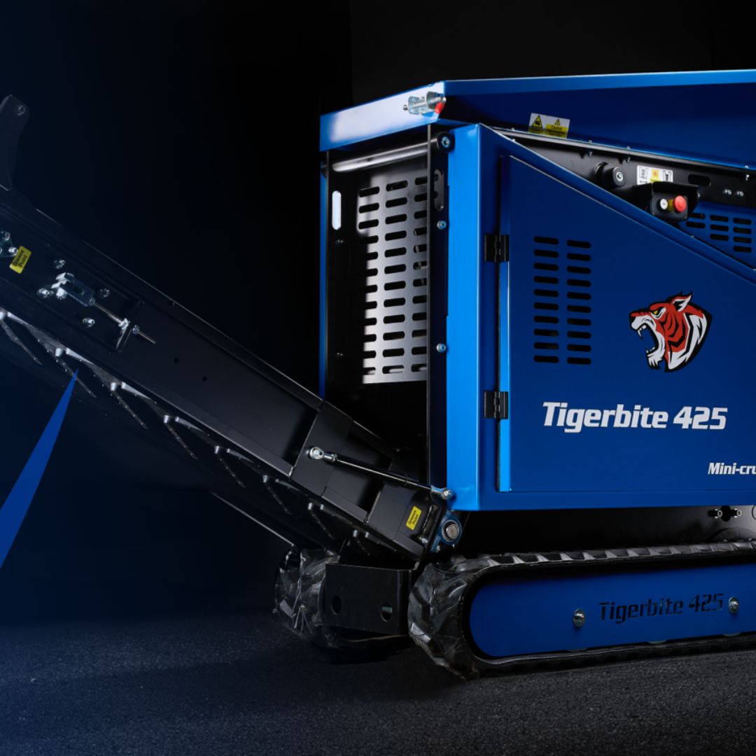 For mini crusher hire in Melbourne, the Tigerbite 425 features a 21.7kW diesel engine, 2.5-tonne weight for easy towing, and a 3.5m x 1.5m footprint. It crushes materials down to 10mm, with dust suppression and magnetic separator options.